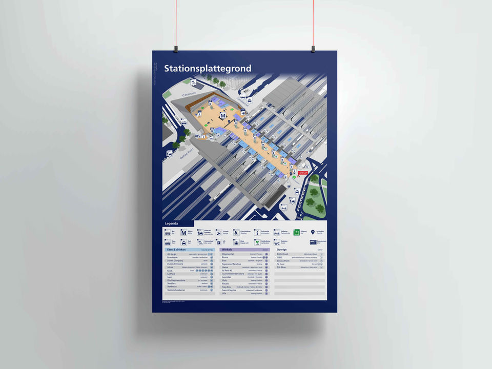 In opdracht van ProRail en NS heeft studionvb voor 35 stations plattegronden ontwikkelt om zo de vindbaarheid van faciliteiten te verbeteren. Daarbij zijn alle stations bezocht om het station en alle faciliteiten in kaart te brengen. Vervolgens is er een 3d model gemaakt van het station wat is vertaald in een poster waarop vanuit vogelperspectief een overzicht wordt gegeven van het station. Uiteindelijk heeft dit alles geresulteerd in ruim 60 stationsplattegronden.